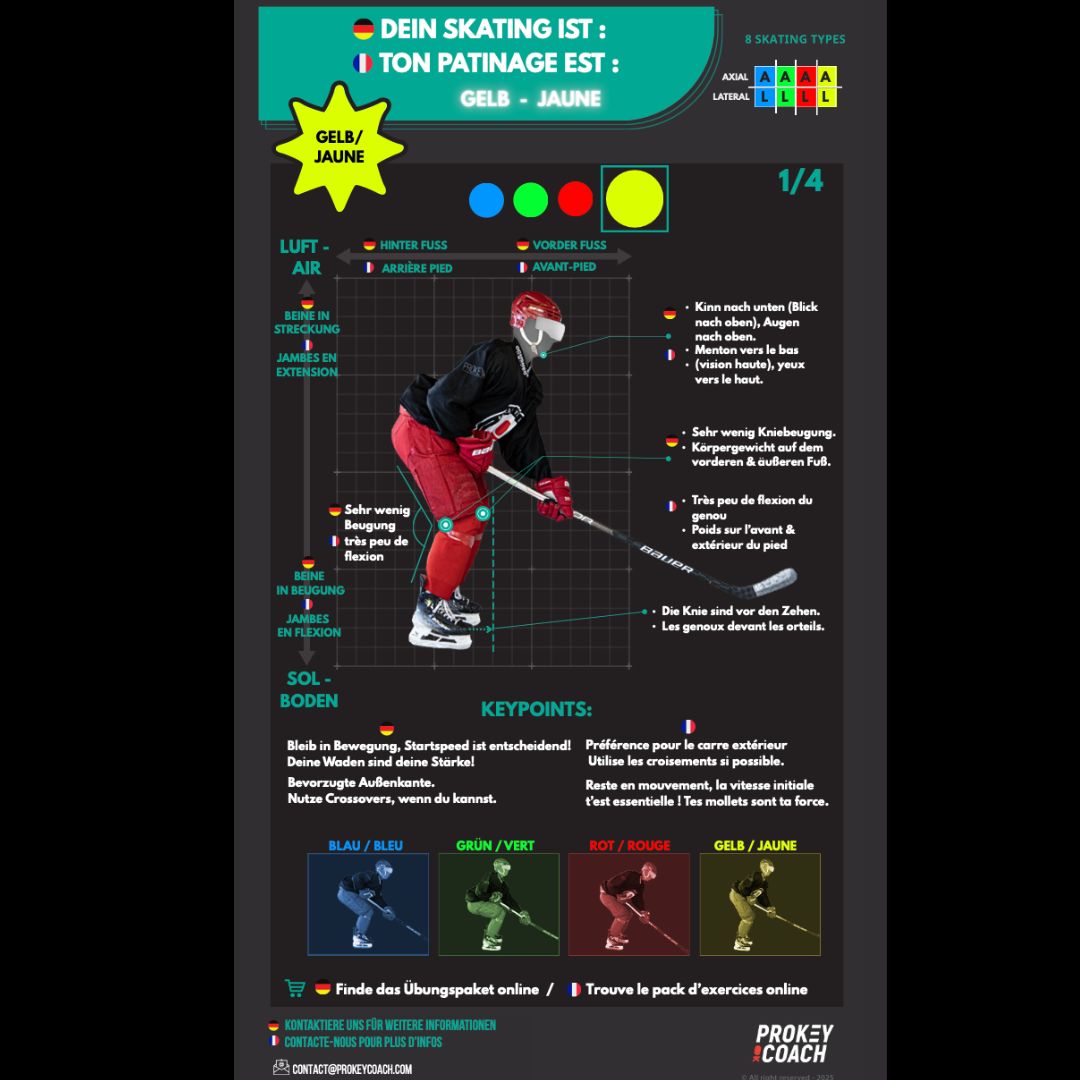Prokeycoach hat die verschiedenen Skating-Typen entsprechend den motorischen Vorlieben jedes Eishockeyspielers herausgearbeitet.
